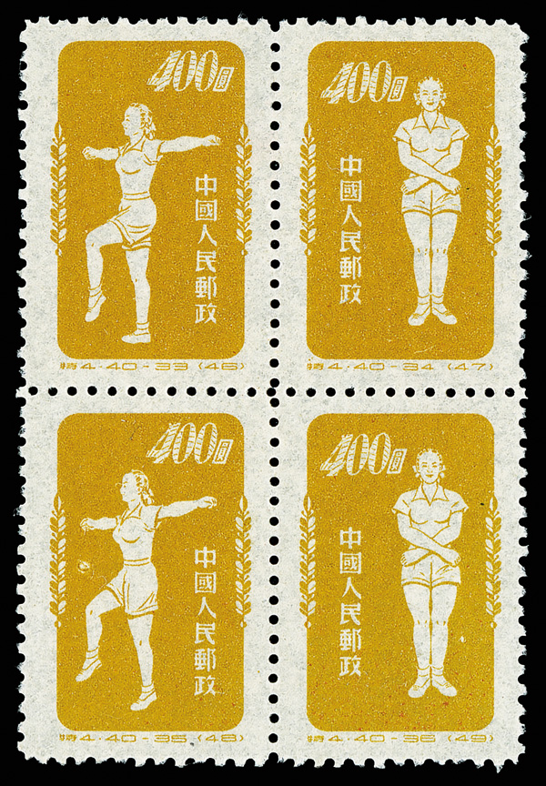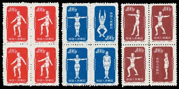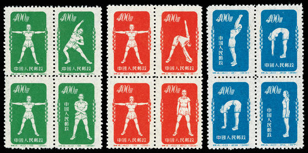 4450 ng image1952, Gymnastics by Radio (S4) complete (Yang S14-53. Scott 141-150), attractive set with bright, fresh colors, without gum as issued; small oil stain #40-37, still Very Fine. Scott $1,400 (HK$ 10,770). (Image1) (Image2) (Image3) (Image4) (Image5) (Image6) (Image7) (Image8) (All Images)