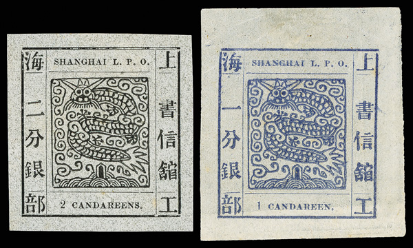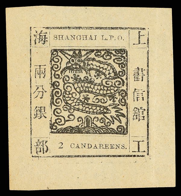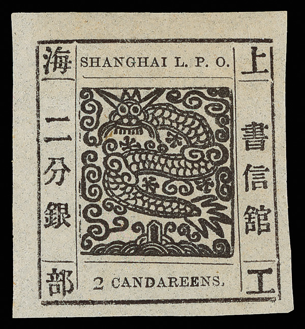 1865, Large Dragon (Antique Numerals, "CANDAREENS" plural), 2ca black, type I, wove paper (Chan LS1. Scott 1. Livingston 1d),