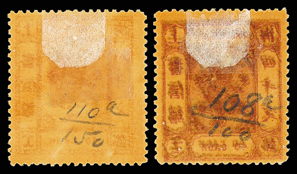 LS119a-120a. Scott 118a-119a), attractive duo with clean colors and clear surcharges, o.g., hinge remnant; even gum toning, Fine to Very Fine. Scott $450 (HK$ 3,460). (Image1) (Image2)