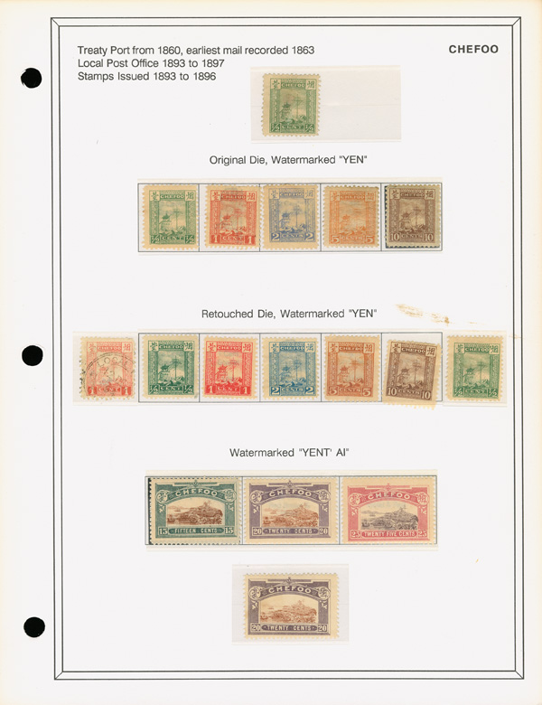 Chinese Cities & Local Posts, Six-City All-Mint Collection, 1893-97, mounted on Michael Rogers album pages for Chefoo,