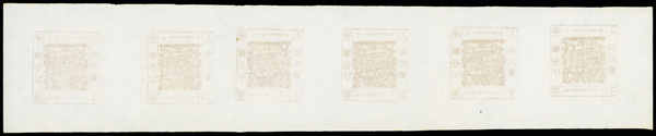horizontal gutter and ultra-wide top selvage, lovely cross-pane multiple, in bright color on pristine paper; o.g., with adherences/reinforcements at center, Very Fine, an uncommon offering. Scott $270 as singles (HK$ 2,080). (Image1) (Image2)