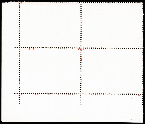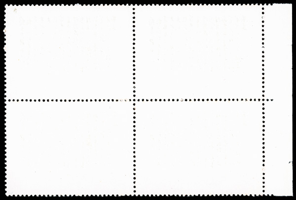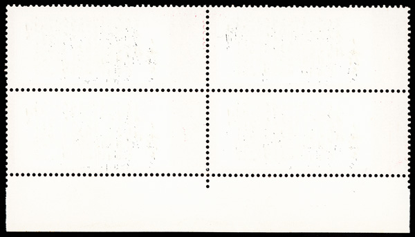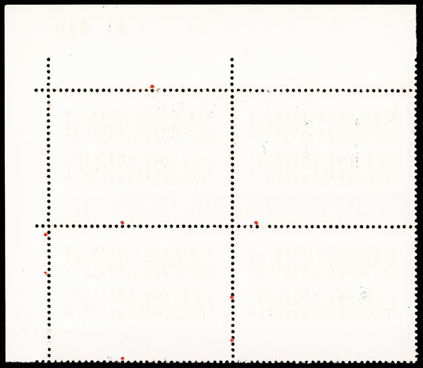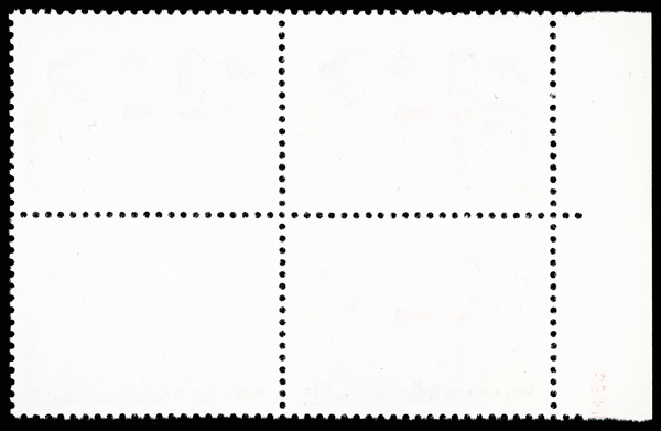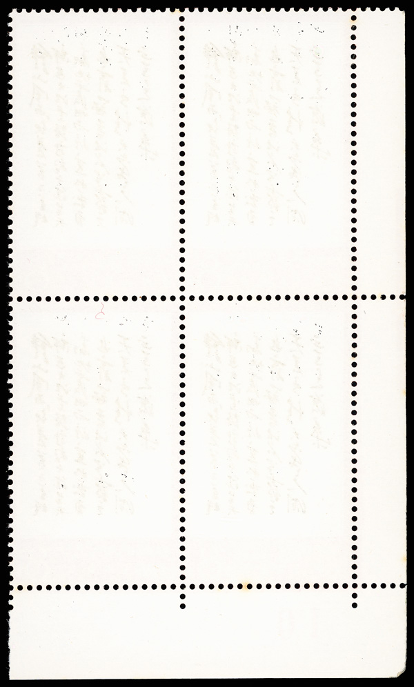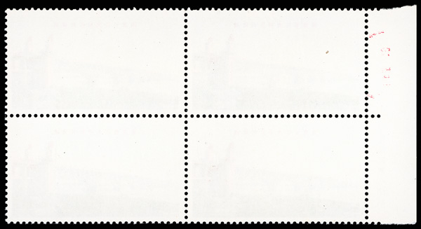 4540 nhbl image1968, 8f "Yellow Crane Pavilion" (W7) (Yang W50. Scott 976), bottom left corner margin block of 4 with printed red "10", Post Office fresh with immaculate gum, o.g., never hinged, Very Fine. Scott $1,240 as singles (HK$ 9,540). (Image1) (Image2) (All Images)
