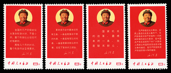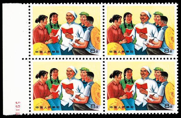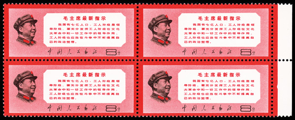 4547 nhbl image1968, Chairman Mao's Instruction (W13) (Yang W62. Scott 999), right margin block of 4, Post Office fresh and pristine, o.g., never hinged, Very Fine. Scott $960 as singles (HK$ 7,380). (Image1) (Image2) (All Images)