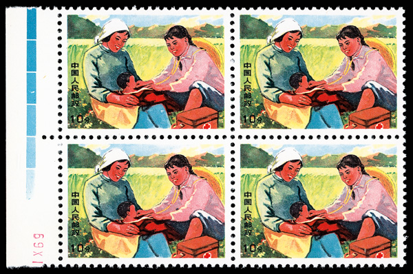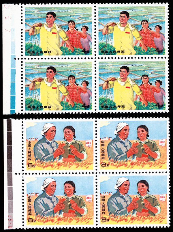 4550 ngbl image1969, Agricultural Workers (W18) complete (Yang W71-74. Scott 1007-1010), left margin blocks of 4, all with bright, fresh colors, without gum as issued, Very Fine. Scott $670 as singles (HK$ 5,150). (Image1) (Image2) (Image3) (Image4) (Image5) (Image6) (All Images)