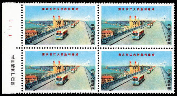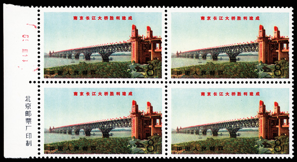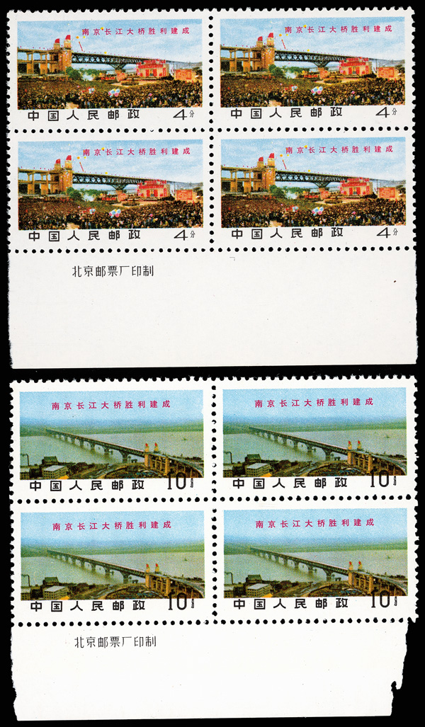 4548 ngbl image1968, Yangtse River Bridge at Nanking (W15) complete (Yang W64-67. Scott 1001-1004), imprint blocks of 4, desirable set, Post Office fresh, without gum as issued, Very Fine. Scott $442 as singles (HK$ 3,400). (Image1) (Image2) (Image3) (Image4) (Image5) (Image6) (All Images)