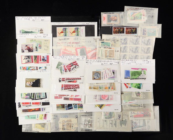 #102 cards, all identified with values, ready to arrange and sell, from earlies through Cultural Revolution issues; singles, multiples, part- and complete sets are all present, appearing fresh and sound and generally lightly or unobtrusively
