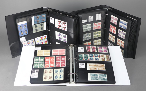 binders plus extra loose, featuring some absolute gems; all in blocks of four or larger, sheets, booklets, or souvenir sheets; includes a massive assortment with an impressive amount of desirable material, with better including: #57-59, 60-64, 74-75,
