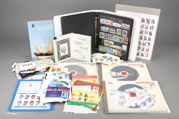 everything except stamps and booklets here, including First Day Covers ranging from 1983-2004 with some duplication (e.g., ten #1844), handfuls of single-issue presentation packs, 2006 Beijing Stamp Exhibition Presentation Books (24), 2004 Deng