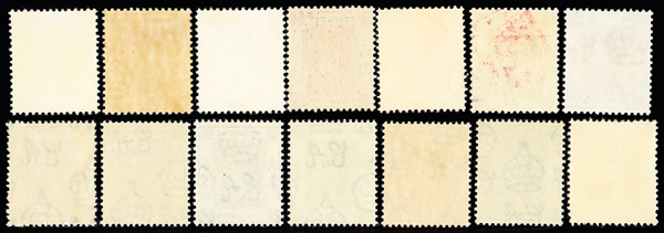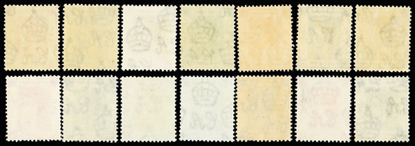 4760 og image1912-21, King George V, 1¢ to $10 complete, plus 25¢ Type II (Scott 109-124, 128), Multiple Crown CA watermark, fresh and pristine with magnificent colors, freshness, and very clean o.g., most lightly or very lightly hinged, Very Fine, a connoisseur's set. (Image1) (Image2) (Image3) (Image4) (All Images)
