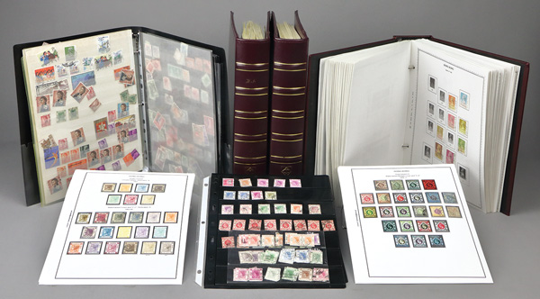 4772 imageHong Kong, Useful Mint and Used Collection, 1863-2004, mostly mounted in a number of different albums or binders, with the bulk of material and value after about 1982; pre-Elizabethan material nearly all used and on Palo album pages (printed in color; look for cancels for a general idea of what is actually present) and a Minkus album, the Queen Elizabeth II material largely on homemade pages in two slipcased Lighthouse binders, including sets, se-tenants, souvenir and miniature sheets, booklets, etc.; no great rarities present, but plenty of solidly salable material, with much of interest to the Topicalist as well, Fine to Very Fine with later Very Fine, see a sampling online. Shipping charges apply - weight 18 lbs. (PDF for this Lot) (Video for this lot) (Image1) (All Images)
