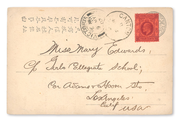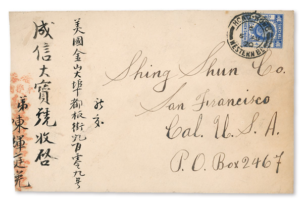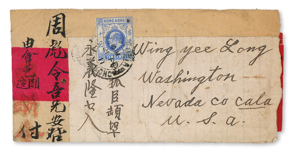 4766 cover image1911-20, Two Western Branch covers to the US, the first a Feb. 20, 1911 red band cover to Washington, California (with contents), bearing 10¢ King Edward VII cancelled by Feb. 21, 1911 Hong Kong Victoria c.d.s., with reverse showing Western Branch 20 FE 11, Webb Type D origin c.d.s.'s, along with Washington, Cal. Mar 24 receiver; the second an Aug. 6, 1920 nice quality cover franked by 10¢ King George V tied by bold "Western Br./Hong Kong/6 AU/20" c.d.s., with reverse showing Hong Kong same-day transit and lacking a San Francisco arrival marking, F-VF or better, Fine to Very Fine or better. (Image1) (Image2) (Image3) (Image4) (All Images)