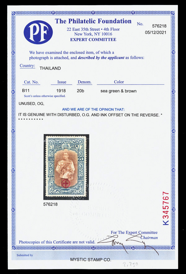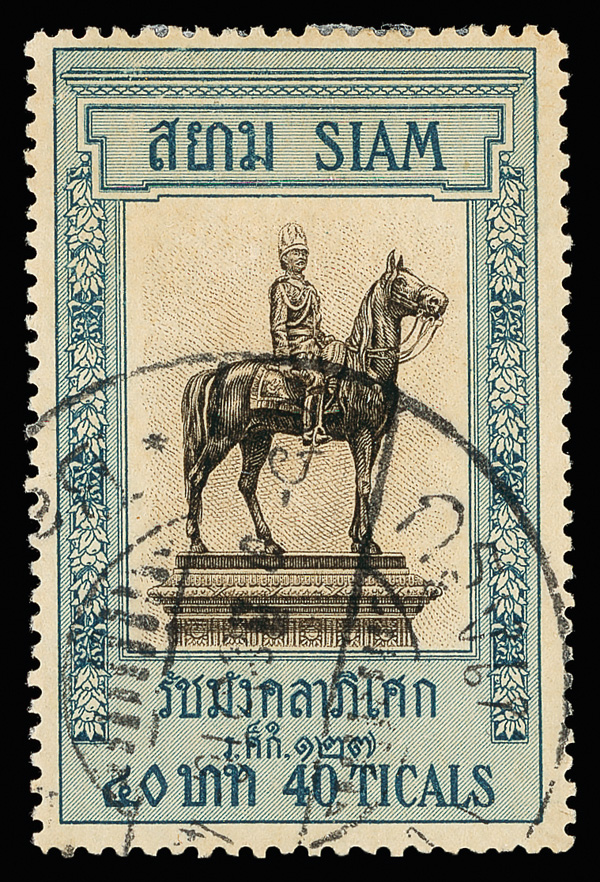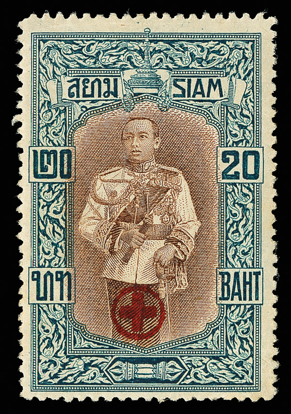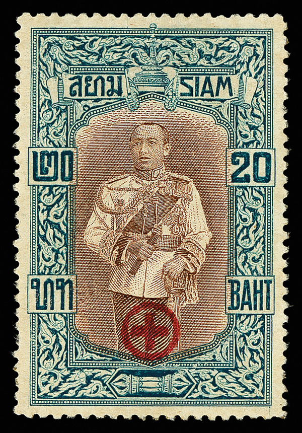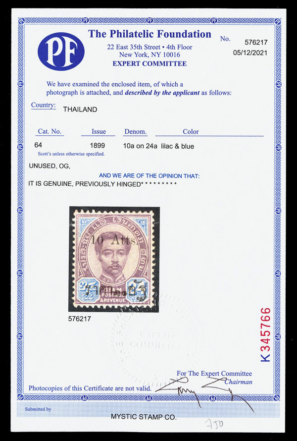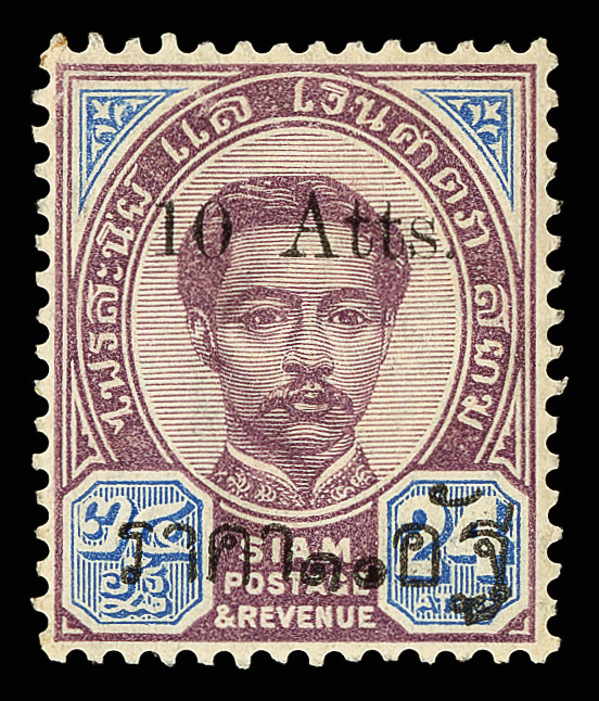 4799 og image1899, King Chulalongkorn, 10a on 24a lilac & blue, Roman surcharge (Scott 64), fresh and beautifully centered, o.g., very lightly hinged, Very Fine, a very scarce stamp, with 2021 P.F. certificate. (Image1) (Image2) (Image3) (All Images)