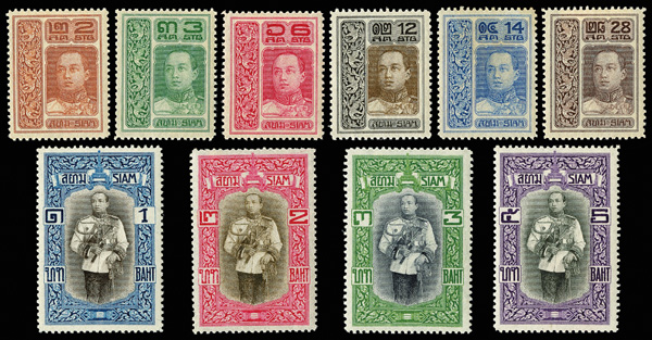4802 og image1912, King Vajiravudh, 1b-20b complete (Scott 145-156), a simply exquisite quality set boasting vibrant colors and full, clean gum, o.g., lightly hinged, Very Fine and choice. (Image1) (Image2) (Image3) (Image4) (All Images)