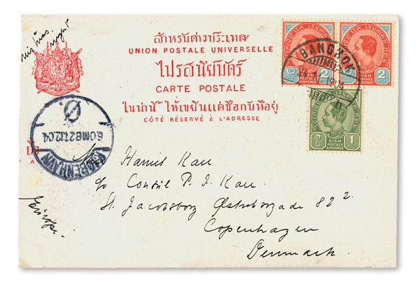 4808 cover image1904-27, Assortment of Thailand to Denmark Covers and Postal Cards, features three covers and three attractively franked postal cards (depicting temples and the Royal rest house), all sent to Denmark and appropriately used; a nice assortment of items in good condition. (PDF for this Lot) (Image1) (All Images)