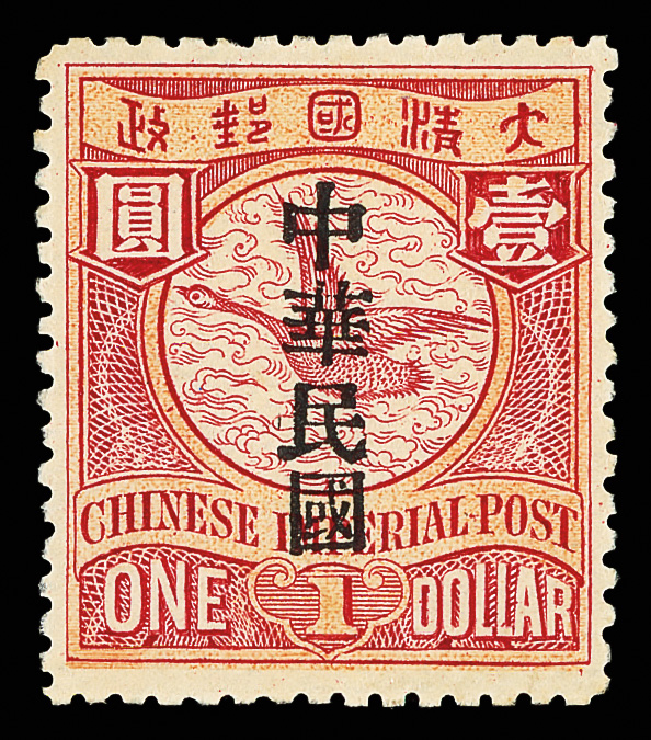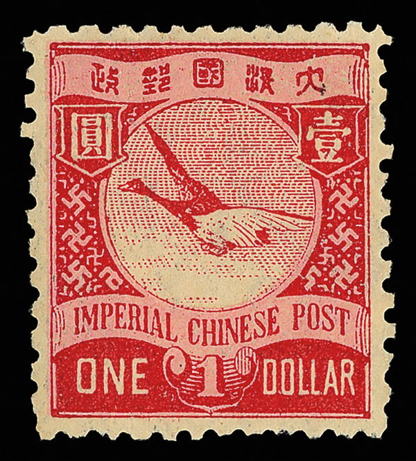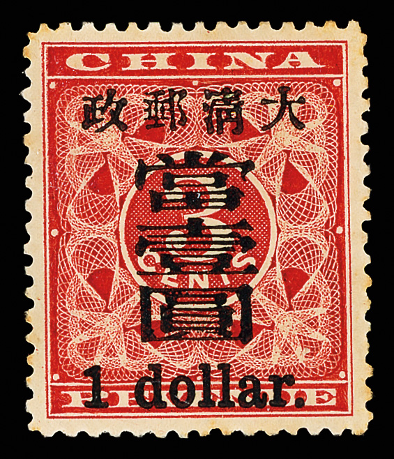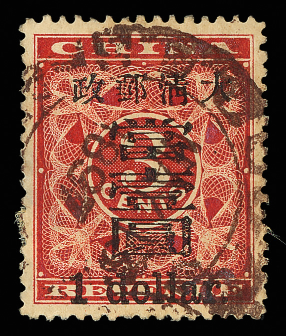1906, Chinese Imperial Post, unwatermarked, $1 red & pale rose, retouched "One" character type A (Chan 126a. Scott 120 var.),