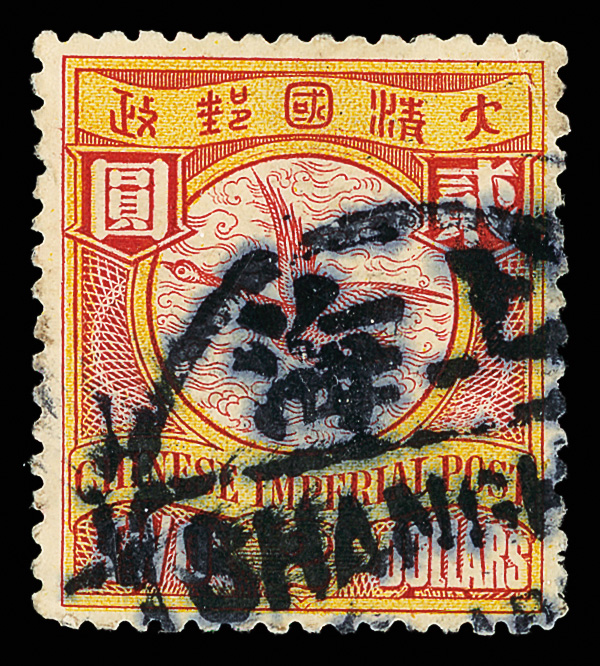 1906, Chinese Imperial Post, unwatermarked, $2 carmine & yellow, re-entry of "Two" character (Chan 127a. Scott 121 var.),