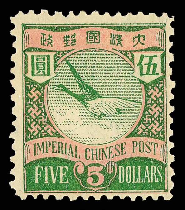 1897, Imperial Chinese Post, $5 yellow green & rose (Chan 103. Scott 97), wonderfully fresh with incredible colors and strong