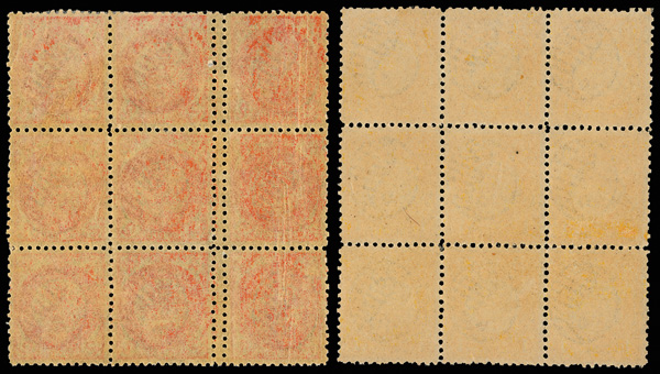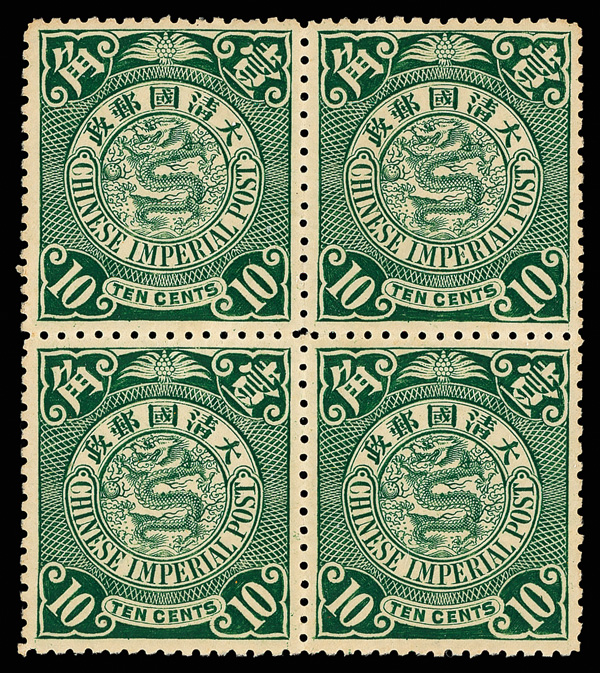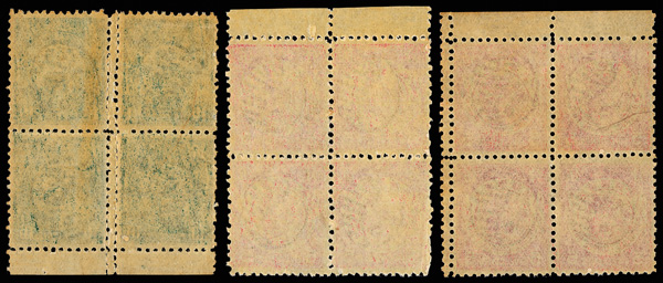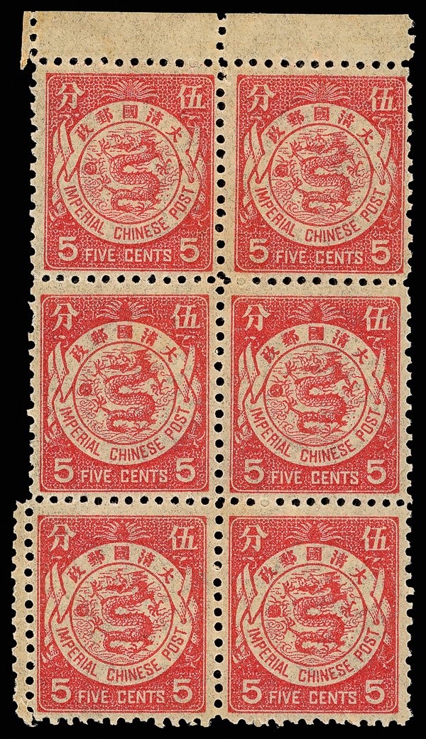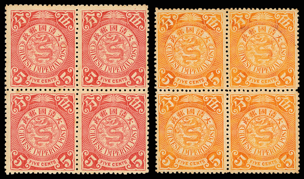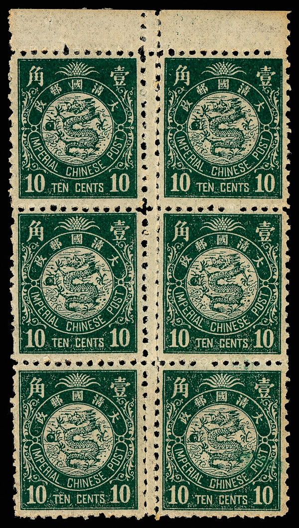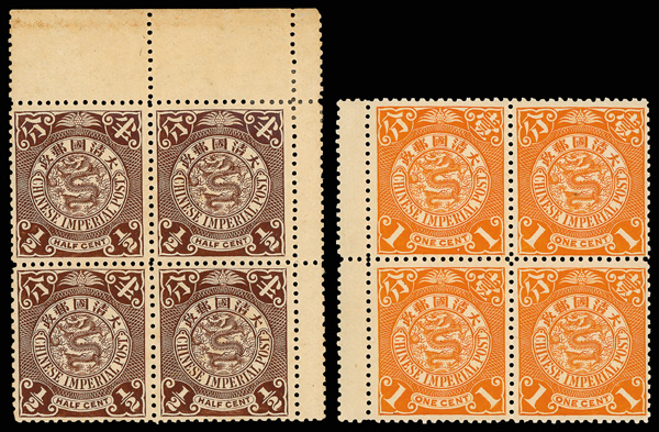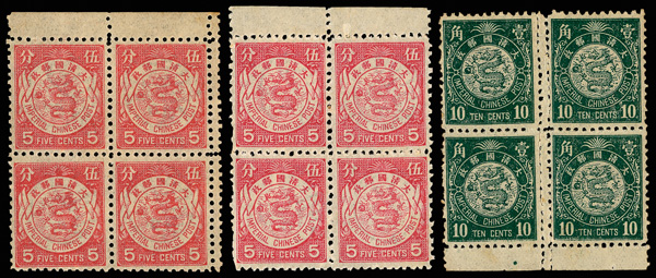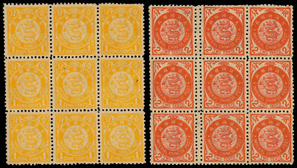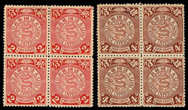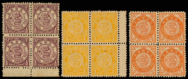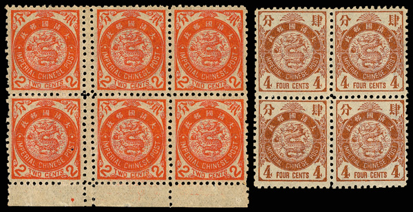 1900, Chinese Imperial Post, unwatermarked, ½¢ brown - 10¢ green (Chan 116//122. Scott 110-116), blocks of