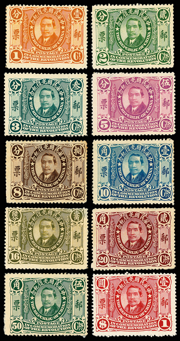 4149 og image1912, Revolution Commemorative complete (Chan 184-195. Scott 178-189), crisply printed with clear details; most with gum issues (toned, hinge remnant, etc.), though key $2 and $5 values fresh and Very Fine with clean o.g. Scott $1,984 (HK$ 15,260). (Image1) (Image2) (Image3) (Image4) (All Images)