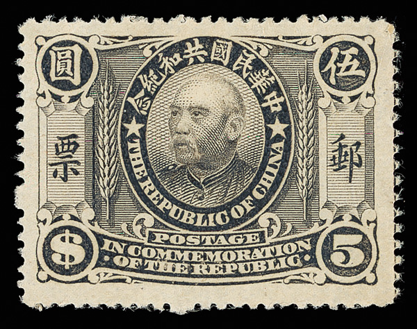 4152 og image1912, Republic Commemorative, $5 slate (Chan 207. Scott 201), a gorgeous example in true Post Office fresh condition, nicely centered on pristine paper, o.g., hinged, Very Fine to Extremely Fine. Scott $725 (HK$ 5,580). (Image1) (Image2) (All Images)