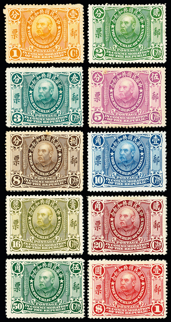 193 og/ng image1912, Republic Commemorative complete (Chan 196-207. Scott 190-201), lovely, choice-quality set, bright with strong colors; lightly or very lightly hinged less 10c no gum, otherwise Very Fine. Scott $1,279 (HK$ 9,840). (Image1) (Image2) (Image3) (Image4) (All Images)