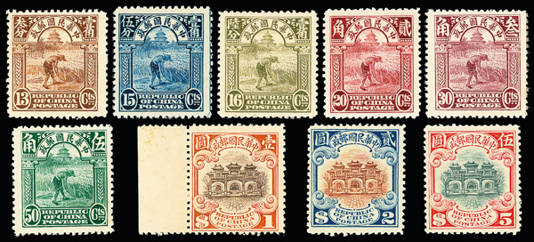 194 nh/og image1913, Junk Issue, London printing, ½¢-$10 complete (Chan 208-226. Scott 202-220), splendid set with vibrant colors, crisp details and outstanding centering; fresh gum throughout, with many lower values never hinged, Very Fine and choice. Scott $4,283 (HK$ 32,950). (Image1) (Image2) (Image3) (Image4) (All Images)