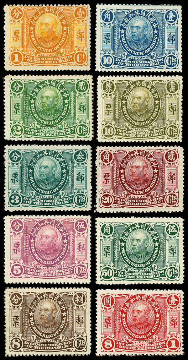 192 og/ng image1912, Republic Commemorative complete (Chan 196-207. Scott 190-201), fresh-faced with bold color and clean impression throughout, the $2 and $5 high values exceptional; 3c and 20c each no gum and shallow thins, all others sound and variously hinged, Fine to Very Fine or better. Scott $1,279 (HK$ 9,840). (Image1) (Image2) (Image3) (Image4) (All Images)