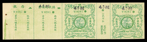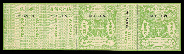 269 ng imageExpress Letter, 1913 & 1914, 10¢ green (Chan E8, E9. Scott E9, E10), each a full, intact strip of five, fresh and clean in exceptional quality, without gum as issued, Very Fine. Scott $1,250 (HK$ 9,620). (Image1) (Image2) (Image3) (Image4) (All Images)