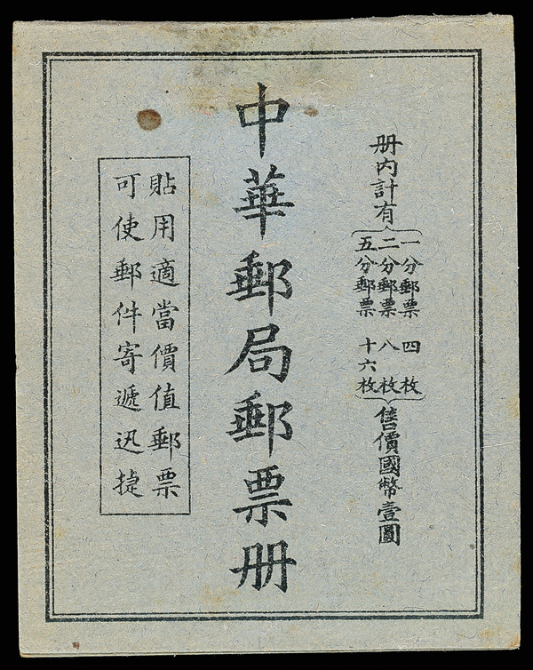 292 nh imageBooklet, 1935, $1, black on grayish blue cover with map routes in red (Chan Booklet 18), containing Martyr 1c. x 4 and Dr. Sun Yat-sen 2c. x 8 and 5c. x 16, complete and unexploded, sound, o.g., never hinged; a couple minor and trivial age-related imperfections, Very Fine, rare, ex "Sunrise Collection". (Image1) (Image2) (All Images)