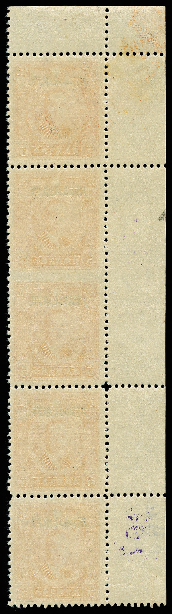 351 nh image1946, 5c Martyr, Hong Kong Print, "Limited for Use in North-East" surcharge, vertical pair, imperforate between (Chan NE14d. Scott 8 var.), positions 2-3 in top left corner margin vertical strip of 5, pristine with intense color and bold surcharge, o.g., never hinged, Very Fine, rare and unpriced, ex "Sunrise Collection", with 2002 Experts & Consultants Ltd. certificate. (Image1) (Image2) (Image3) (All Images)