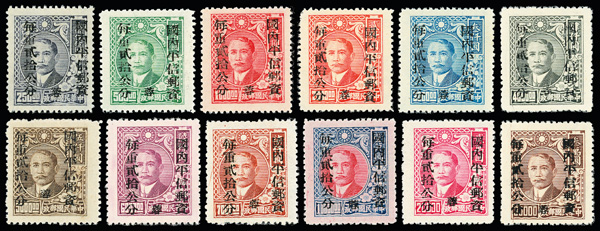356 ng image1949, Unit Stamps, West Szechwan "Domestic Ordinary" overprints on Dr. Sun Yat sen and Plum Blossoms complete (Chan S113-S138. Scott 24-49), pristine set with vivid colors and clean impression, sound with most in superior centering, without gum as issued, Very Fine. Scott $1,026 (HK$ 7,890). (Image1) (Image2) (Image3) (Image4) (Image5) (Image6) (All Images)
