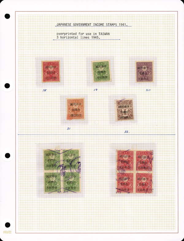 443 imageTaiwan, Valuable Revenue Holding Mint, Used & On Documents, 1949-76, Beautifully presented in one massive Lindner binder, a collection of about 200 revenues with nearly 100 more in blocks, both used & unused, covering the judicial tax stamps created by overprinting surplus Japanese income tax stamps, the subsequent Sun Yat-sen issues of the 1940s including the overprints for Quemoy Island, and more, overall Fine to Very Fine, viewable in its entirety online. Shipping charges apply - weight 8.4 lbs. (Video for this lot) (Video2 for this lot) (Video3 for this lot) (Image1)