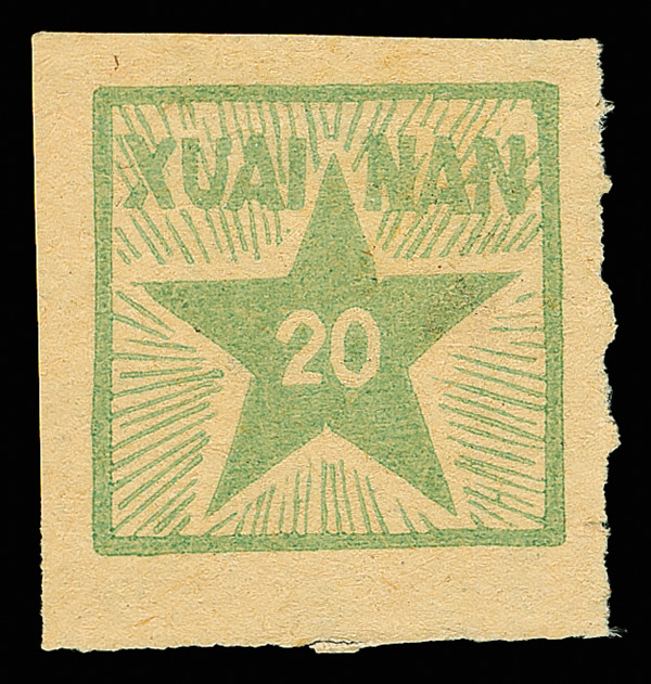 469 ng image1942, Huainan Area, "Kao" (despatch) overprint on Star, 20¢ red (Yang EC209), position 8 from the pane of ten, wonderfully fresh with clear color and impression, without gum as issued, Extremely Fine, a Gem, ex "Sunrise Collection". (Image1) (Image2) (All Images)