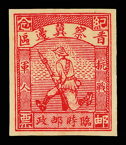 457 ng image1938, Shanxi-Chahar-Hebei Border Area, Military Post, "Running Soldier", deep red (Yang NC8), a gorgeous stamp with rich, deep color, bright paper, and large, even margins, without gum as issued, Very Fine, an absolute beauty, ex "Sunrise Collection". (Image1) (Image2) (All Images)