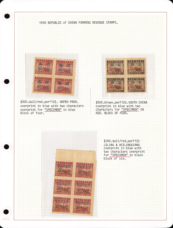 454 imageChina (People's Republic) - Liberated Areas, Impressive Revenue Collection On & Off Documents, 1946-50, Exceptional collection of revenues from the liberated areas following World War II presented on quadrille pages with each item in a clear mount and annotated in English. Well over 100 stamps with an additional dozen or so blocks of varying size and numerous examples on document, overall Fine to Very Fine, viewable in its entirety online. Shipping charges apply - weight 3.2 lbs. (Video for this lot) (Image1)