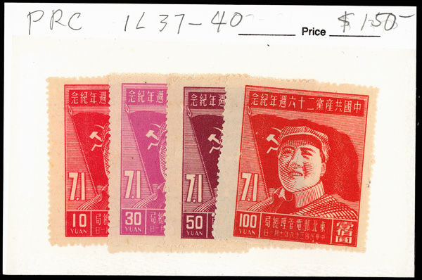 456 imageChina (People's Republic) - Liberated Areas, Mint Compilation of Scott-Listed Issues, on various-sized dealer cards, comprising #1L37-1L40, 1L55-1L57, 2L57, 2L57a, 3L1-3L8, 3L82-3L87 (short the $140 value), and 6L90-6L109; fresh and clean throughout, fully identified and readily saleable, without gum as issued, Fine to Very Fine, fully imaged online. (PDF for this Lot) (Image1)