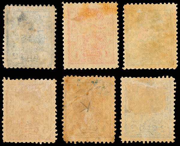 29 og/O image1894-95, Selection of varieties (Chan LCH1c//LCH14 vars. Scott 1b//14 vars.), comprising ½¢ vertical pair imperforate between (Scott #1b, Chan #LCH1c), plus Second Issue with additional line of perforations through design (1¢ & 2¢ used, 4¢ mint and used, 5¢ mint, 10¢ used); a couple faults, but still an interesting group, o.g., hinge remnants, Fine to Very Fine or better. Scott $548 (HK$ 4,220). (Image1) (Image2) (Image3) (Image4) (All Images)