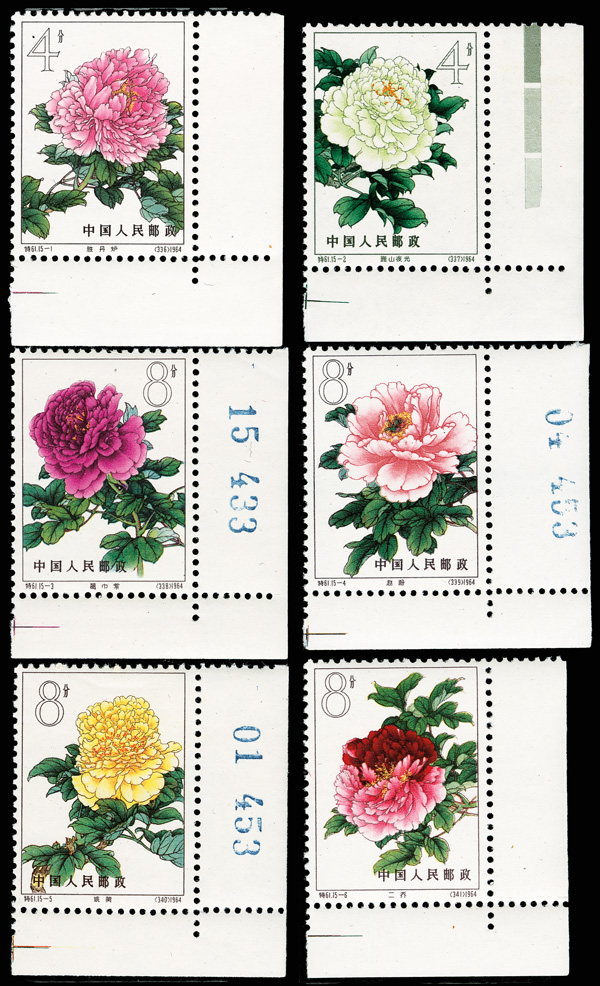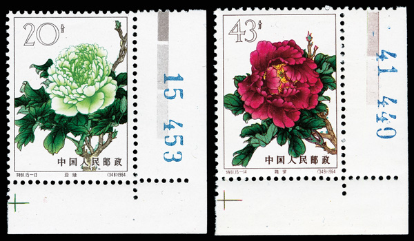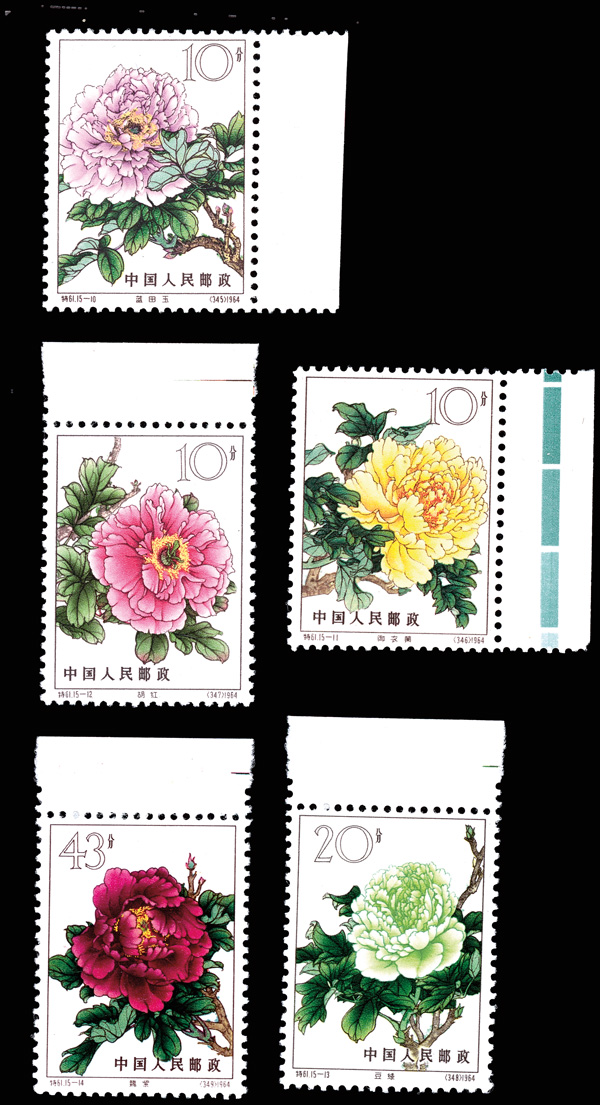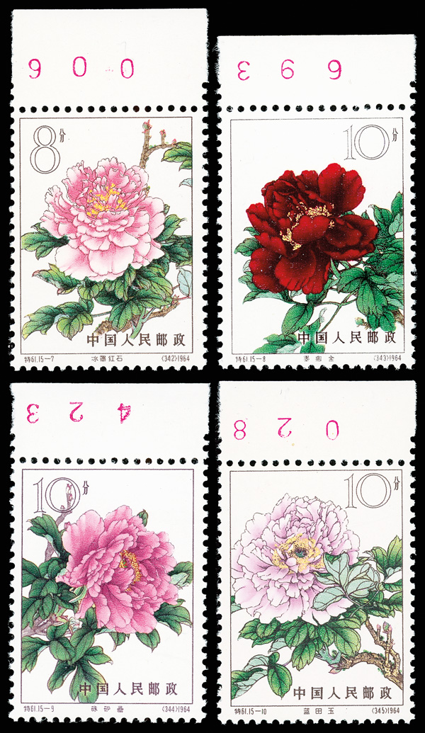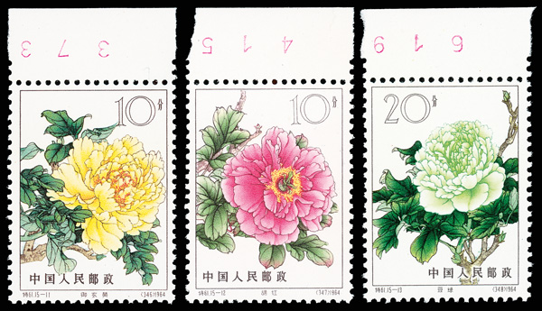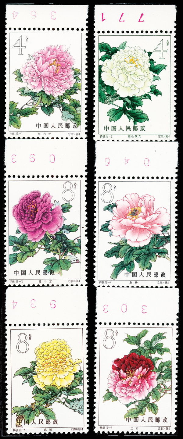 542 nh image1964, Chinese Peonies (S61) complete (Yang S336-350. Scott 767-781), matched set of top margin sheet number singles, wonderfully fresh with clean, white gum, o.g., never hinged; a few natural, trivial gum wrinkles, Very Fine, a lovely set. Scott $743 (HK$ 5,720). Shipping charges apply - weight 1.4 lbs. (Image1) (Image2) (Image3) (Image4) (Image5) (Image6) (Image7) (Image8) (All Images)