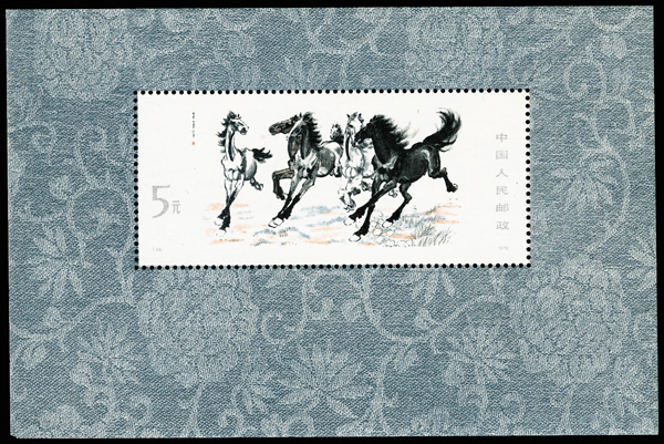 570 nh image1978, Galloping Horses souvenir sheet (T28M) (Yang T28M. Scott 1399), pristine and sound, o.g., never hinged, Very Fine, ex "Sunrise Collection". Scott $550 (HK$ 4,230). (Image1) (Image2) (All Images)