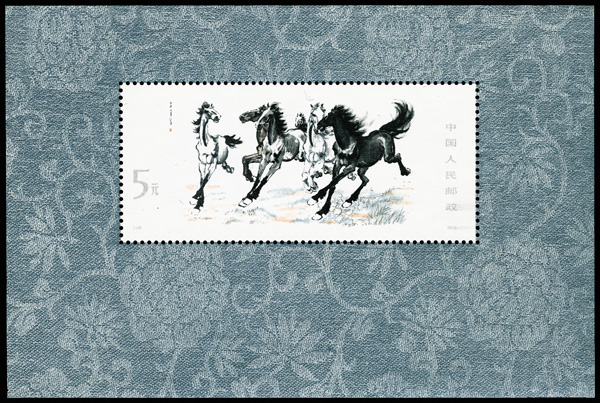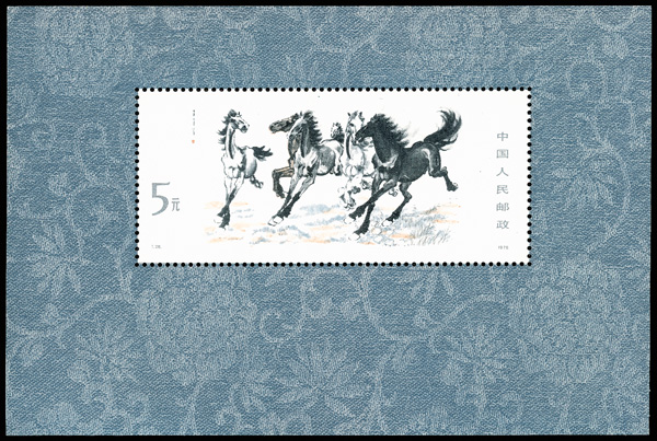 571 nh image1978, Galloping Horses souvenir sheet (T28M) (Yang T28M. Scott 1399), fresh and sound, o.g., never hinged, Very Fine, ex "Sunrise Collection". Scott $550 (HK$ 4,230). (Image1) (Image2) (All Images)