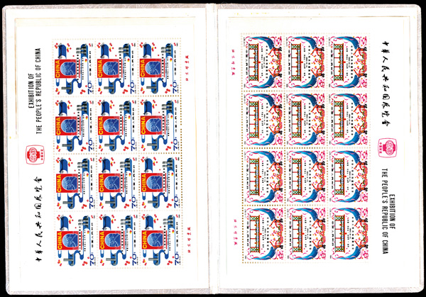 568 nhbl image1980, Exhibitions of PRC in USA (J59) complete, in exhibition presentation folder (Yang J161-162. Scott 1626-1627), full sheets of 12, Post Office fresh and sound, the folder clean, o.g., never hinged, Very Fine. Scott $1,500 (HK$ 11,540). (Image1) (Image2) (All Images)