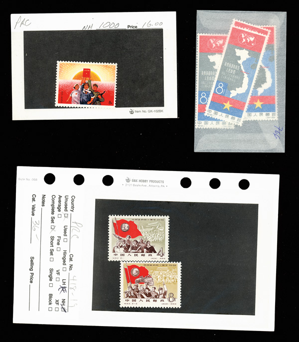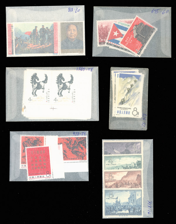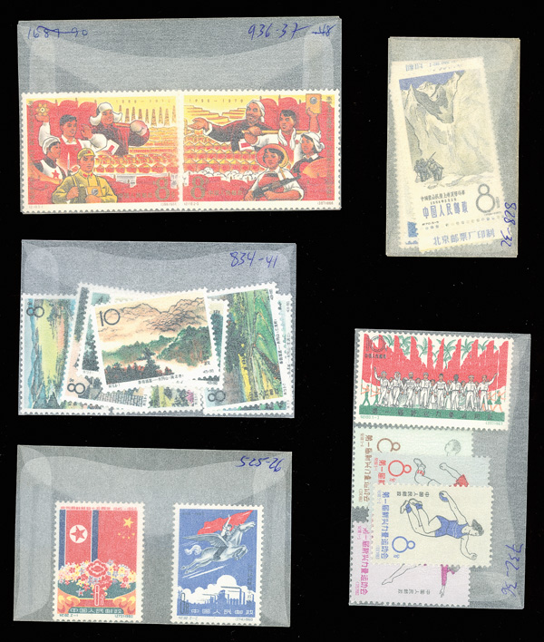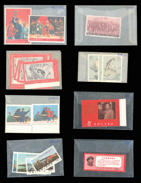mint #85-94, 117-121, 245a-248a, 536-537, 684-695 perforated and imperforate, 798b, 930-935, 927-929, 938, 943a, 948a, Poems of Chairman Mao #969 & 970 (rest of the set used), 1005-1006, 1047-1052, 1054-1057, 1067-1075 (1074a), 1076-1079,