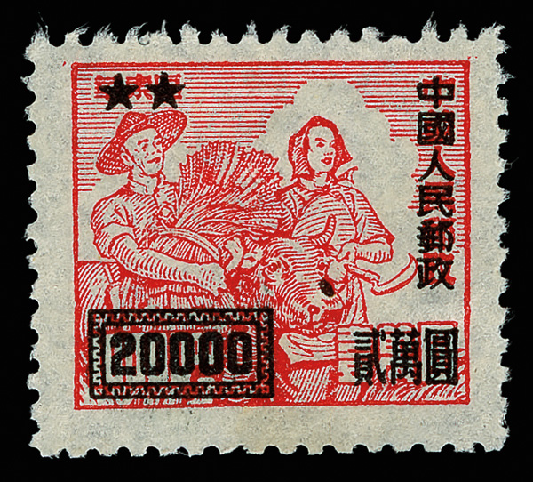 1950, $20,000 on $10,000 East China stamp (SC2) (Yang SC7. Scott 30), bright with clear impression, without gum as issued;