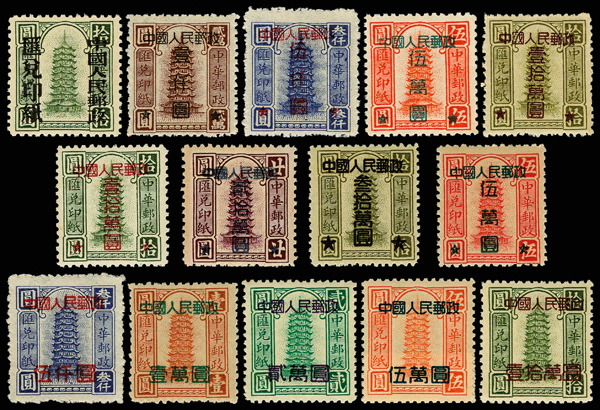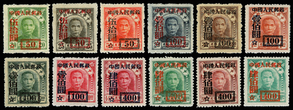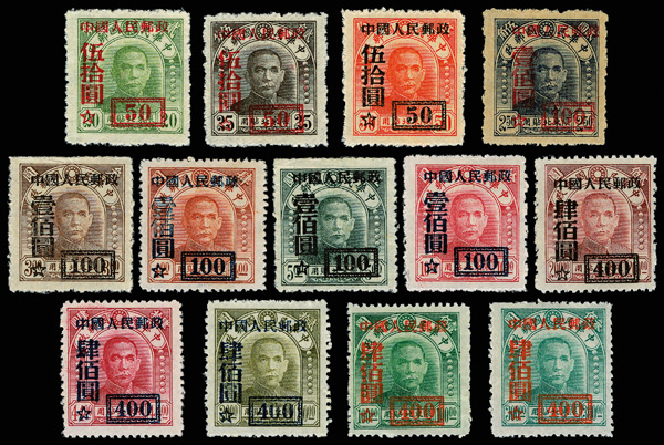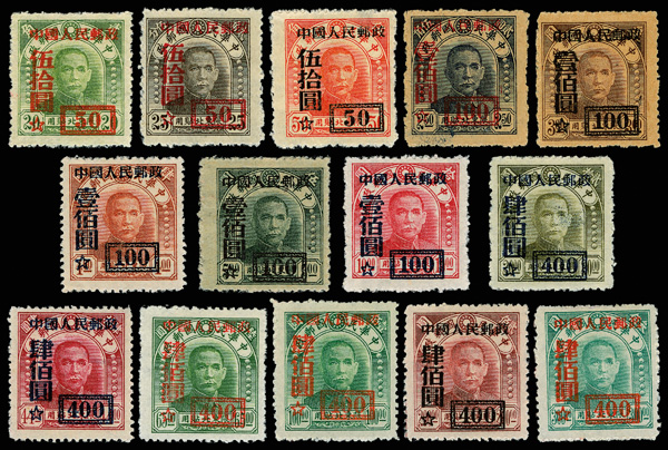 1950, Surcharges on N.E. China Sun Yat-sen (SC3) complete (Yang SC8-24. Scott 35-48), the basic set, Post Office fresh and