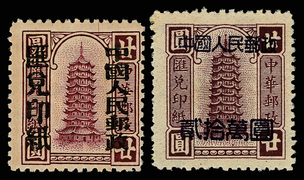 1950, $20,000 on $10,000 East China stamp (SC2) (Yang SC7. Scott 30), fresh and bright, sound, without gum as issued, nearly