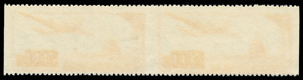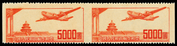 Airmail, 1951, $5,000 orange, imperf between (Yang A3a. Scott C3a), horizontal pair, wonderfully fresh with vibrant color,