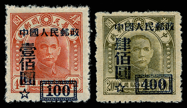 1950, Surcharges on N.E. China Sun Yat-sen (SC3) complete (Yang SC8-24. Scott 35-48, 40a, 43a), including both Types of $4