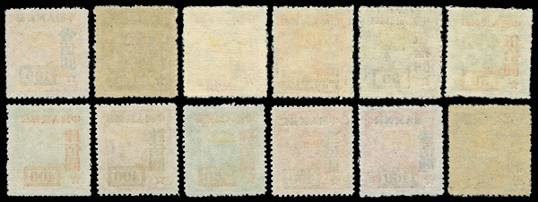 and $20 Sun Yat-sens, a pretty set, each with strong color and clean surcharge, without gum as issued, Very Fine, ex "Sunrise Collection". Scott $1,663 (HK$ 12,790). (Image1) (Image2)