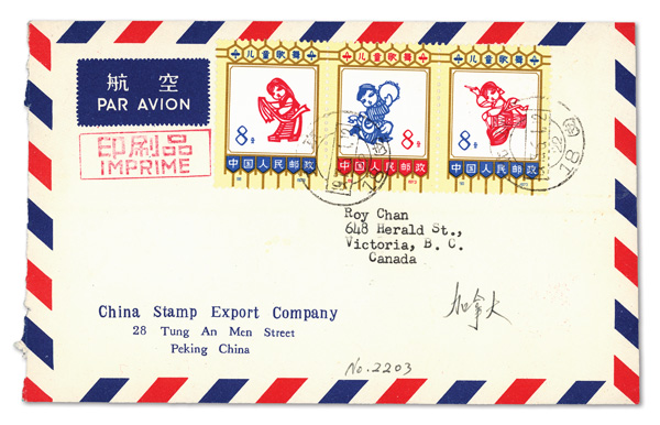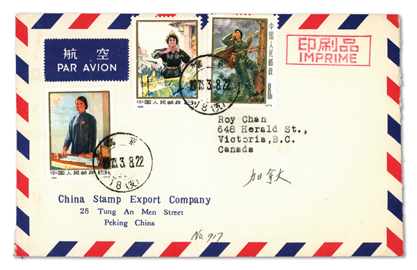 1973, Pair of China Stamp Export Company covers, each fresh and clean, sent as Printed Matter to Victoria, British Columbia;