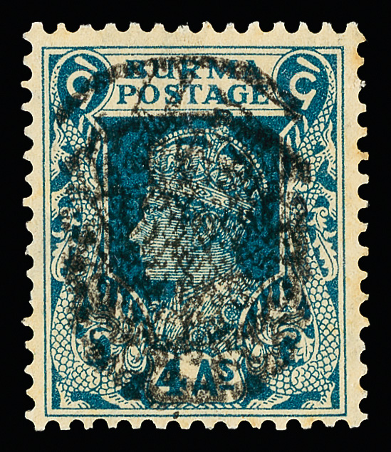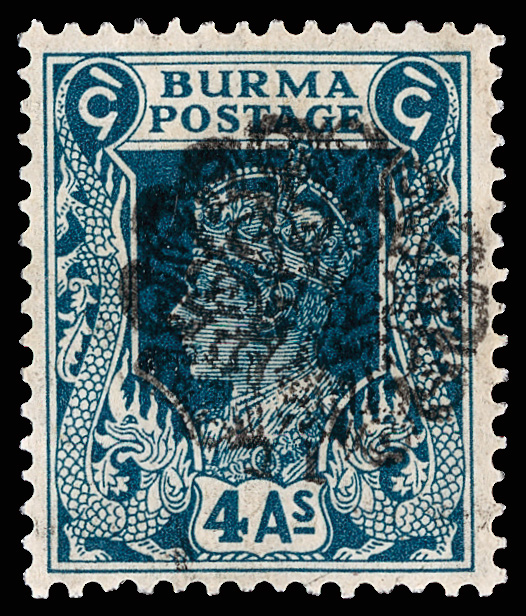 695 og image1942, 4a King George VI Pyapon overprint (Scott 1N49. SG J21), pristine with rich color and full perforations all around, o.g., lightly hinged, Very Fine. SG £700 (HK$ 7,190). (Image1) (Image2) (All Images)